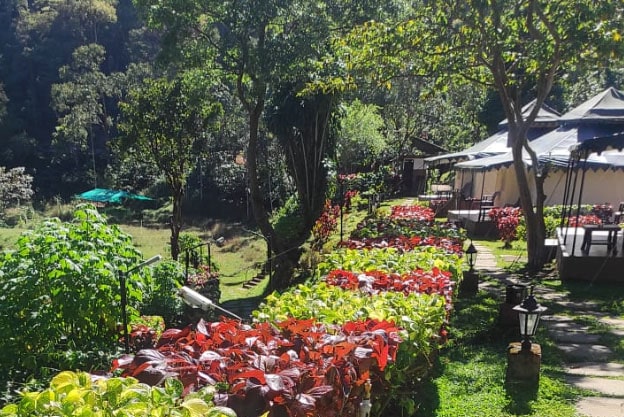 Individual tents spread across 520 sq ft with private Sit-outs overlooking the man made ponds and the beautiful landscape of 3Hills give you an experience that is un-paralleled.
